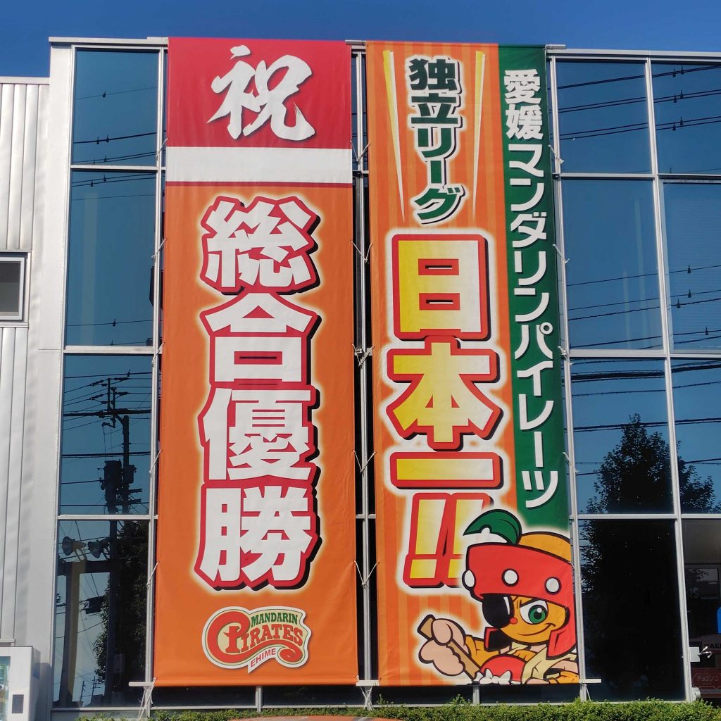 9月28日に真岡ハイトラ運動公園野球場(栃木県真岡市)にて行われました「日本独立リーググランドチャンピオンシップ2025」決勝戦( 対 栃木ゴールデンブレーブス)において、8対2で愛媛マンダリンパイレーツが快勝、最後のバッターを空振り三振で打ち取った瞬間、一塁側マンダリンパイレーツ応援スタンドとベンチ内は割れんばかりの歓喜に包まれました。